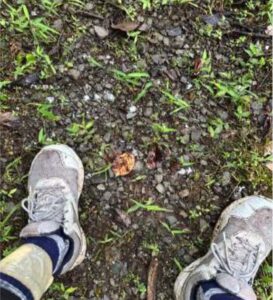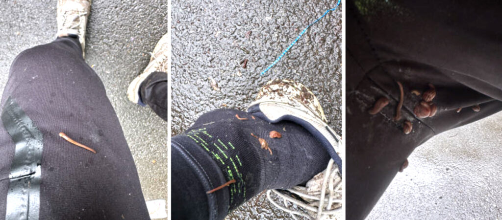 管理センターへ戻りどれくらいヤマビルが寄生しているか確認したら30匹以上靴の中から股にかけていました。ヒルノックにて散布駆除を行いノックダウンさせました。ただ吸血していないヤマビルはヒルノックを浴びてもなかなか死滅しない個体が多かったです。